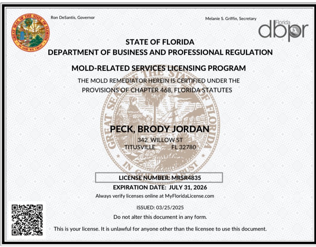 - *USA State Licensed* Mold Assessors & Mold Remediators